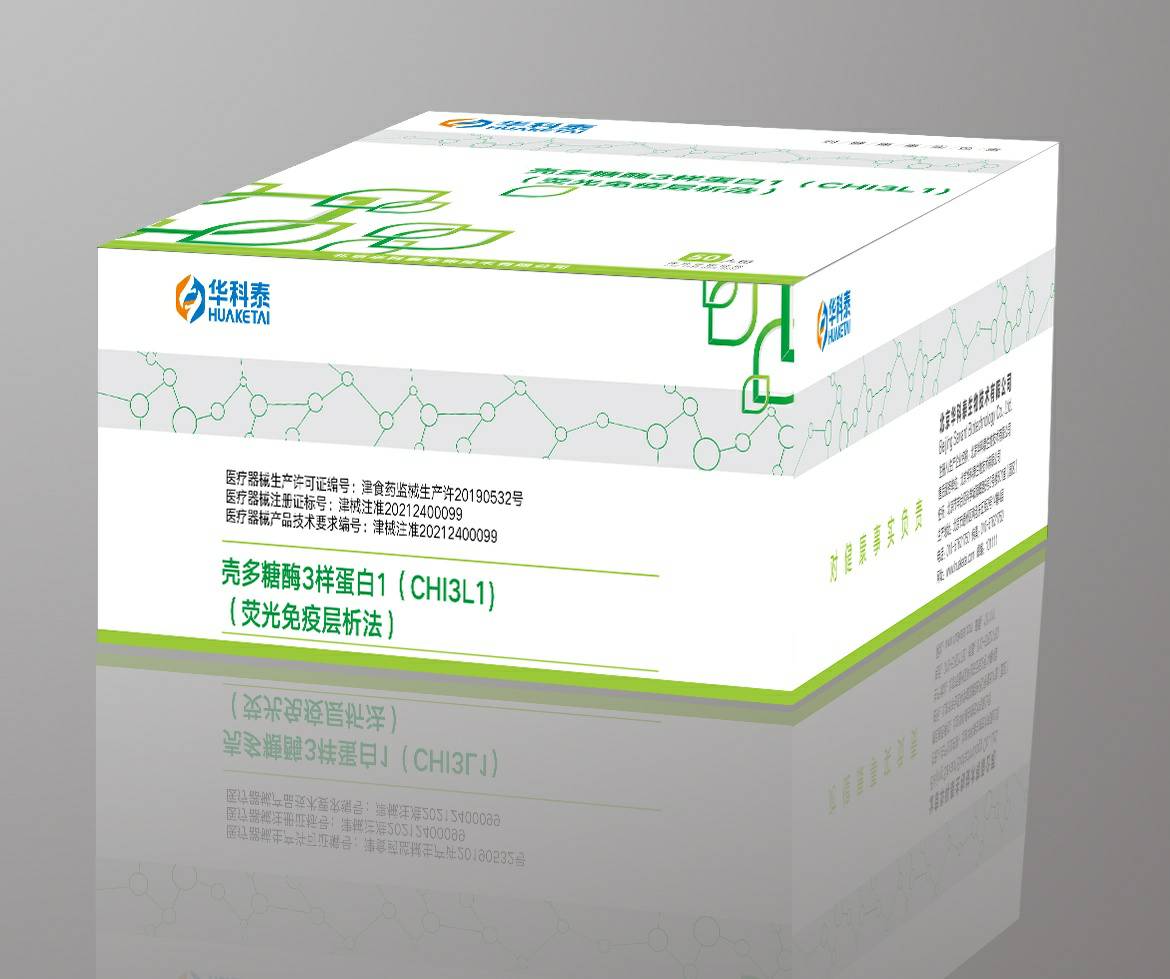 本检测卡用于体外定量测定人血清、血浆或全血中壳多糖酶3样蛋白1(CHI3L1)的含量,CHI3L1一种高灵敏度、高特异性的肝纤维化分期和诊断的血清检测标志物,能够精准的区分不同时期的肝纤维化。可以用来协助诊断病毒性肝炎 、酒精性肝硬化和脂肪肝等导致的肝纤维化和肝硬化!CHI3L1检测也可适用于各种病因的慢性肝病患者,如乙、丙型病毒性肝炎、脂肪肝、自身免疫性肝病等。